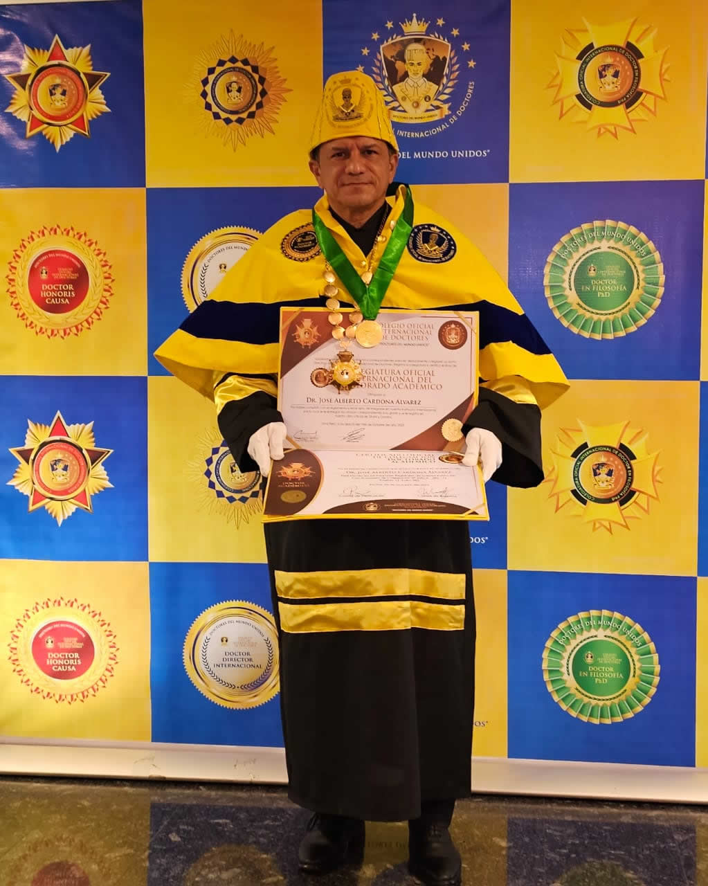 Montería, 9 de octubre de 2023. El médico veterinario zootecnista, docente e investigador científico unicordobés, José Alberto Cardona Álvarez, recibió la colegiación y distinción como Doctor Académico Colegiado, del Colegio Oficial Internacional de Doctores, durante la Séptima Ceremonia de esa organización internacional, que reconoce, certifica y colegia a los doctores de todos los países.