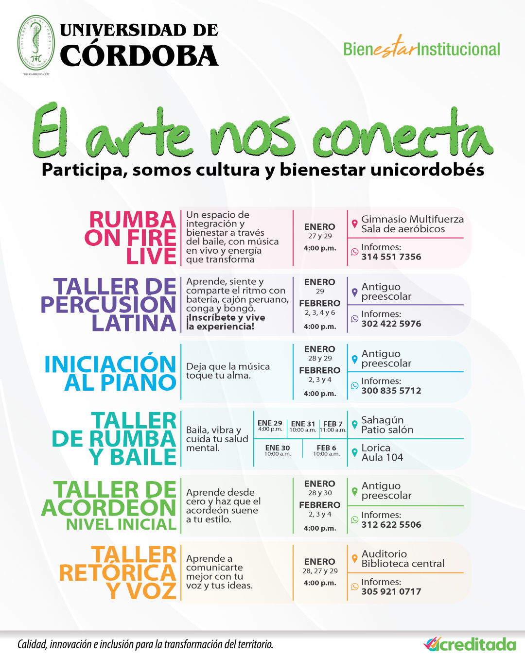 Igualmente se consideran como principios que orientan el Bienestar Universitario en la Universidad de Córdoba los siguientes ⇒